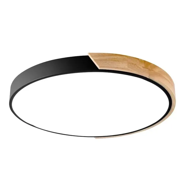 Lampa sufitowa panel loft Plafon LED drewno czarny żyrandol okrąg do kuchni